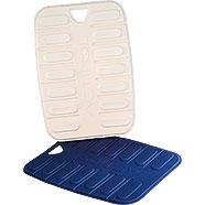 Propriétés magnétiques garanties à vie. 2 x 14 aimants céramiques. Valeur de champ mesuré à 20 cm au-dessus d’une plaque : 2,5 Gauss. Mousse thermoformée. Tissu polyester lavable (eau + savon). Dimensions 415 x 300 mm, ép. 20 mm. Poids : 2 x 1,160 kg. Brevet, marque et modèle déposés.